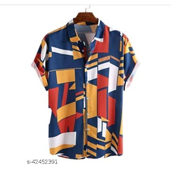 Classic Sensational Men Shirts Fabric: Poly Blend Sleeve Length: Short Sleeves Pattern: Printed Sizes: XL (Chest Size: 44 in, Length Size: 29.5 in) L (Chest Size: 42 in, Length Size: 28.5 in) M (Chest Size: 40 in, Length Size: 27.5 in) Polybland (Stitched), Size: M,L,XL,XXL. Here is the Casual Party Wear Shirt by Lamessia Ideal for Parties and festivals. Our Shirt are Made and stitched using high grade fabrics and yarns Country of Origin: India